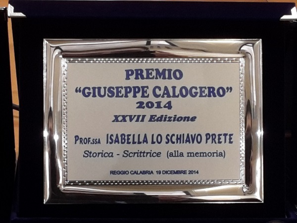 Si è svolta Venerdì 19 dicembre, nella sala della cultura della provincia di Reggio Calabria, la XXVII edizione del premio “Giuseppe Calogero”, organizzata dal locale Circolo Culturale. Il premio, ritirato dal figlio Giuseppe Prete, ha voluto rappresentare un gesto di riconoscimento alla compianta Prof.ssa Isabella Loschiavo. Un premio per la sua bravura e serio impegno svolto nella poesia, nella storia ma anche nella saggistica e nella narrativa. Una vasta attività di scrittrice e storica, esempio della sua personalità vitale e indimenticabile per tutti i suoi allievi e familiari.
