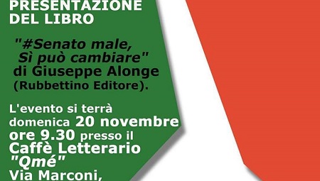 Si terrà domani, Domenica 20, dalle ore 9.30 presso il Caffè Letterario “Qmé” di Lamezia Terme, la presentazione del Libro “#Senato male, Sì può cambiare” scritto da Giuseppe Alonge (Rubbettino Editore). All’evento parteciperanno come relatori Antonio Gatto (Segr. GD Lamezia Terme), Gianluigi Greco (segreteria regionale PD Calabria), Elisabetta Tripodi (già Sindaco di Rosarno) e Sebastiano Barbanti (Parlamentare PD) oltre che, ovviamente, l’autore del Libro.