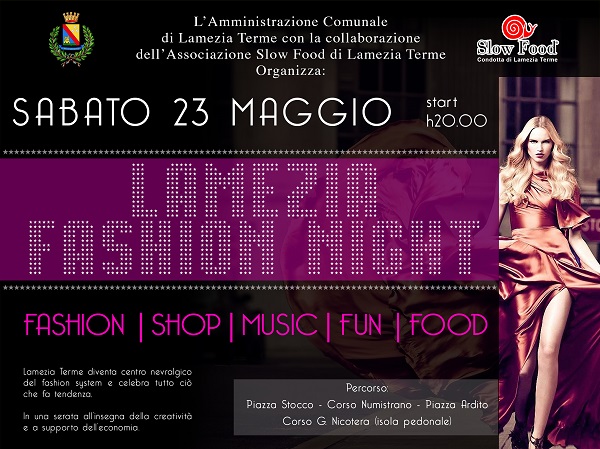 Domani, giovedì 21 maggio alle ore 12:00 presso la sala giunta del Comune in via sen. A. Perugini, l’amministrazione comunale in conferenza stampa presenta la serata Fashion Night in collaborazione con Slow Food prevista per sabato 23 maggio dalle ore 20:00 da piazza Stocco a C.so G. Nicotera (isola pedonale).