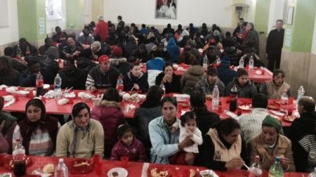 I volontari che hanno cucinato sul posto e servito ai tavoli le pietanze, erano circa 50, tra uomini e donne, e per tutta la serata, hanno fatto del loro meglio per mettere a loro agio gli speciali ospiti, i quali dal canto loro, li hanno ringraziati con lunghi applausi e con vere e proprie dimostrazioni di riconoscenza, come l’africano Djonne che, avvicinatosi al microfono, ha tenuto a ringraziare, in nome di tutti i suoi compagni, e in perfetto italiano, tutta la comunità molochiese, sostenendo che è solo grazie a loro se «abbiamo potuto festeggiare il Capodanno». La cena, si è svolta nel migliore dei modi, i commensali hanno molto apprezzato i cibi preparati per loro, con particolare accorgimento per la carne, volutamente assenta dal menù, per non urtare la sensibilità e rispettare la religione di ognuno. Per i bambini invece, la cui partecipazione non era stata prevista, è scattata una speciale raccolta “dell’ultimo minuto”. Avvertiti dai volontari, coloro che hanno a casa bimbi piccoli, si sono prodigati nel donare omogeneizzati e latte in polvere. Soddisfatto per l’iniziativa molo chiese, il vescovo della diocesi di Oppido-Palmi Francesco Milito, che non potendo partecipare alla cena, ha fatto sentire comunque la sua presenza e vicinanza, mandando in dono una torta, sulla quale campeggiava una significativa decorazione, ossia un ponte che univa l’Italia all’Africa. Al termine della cena, ad ogni immigrato, è stato fatto dono di un pacco contenente vari generi alimentari, che tutta la comunità ha offerto con grande generosità. «Sono tanti i sentimenti che si incrociano in queste occasioni – ha spiegato don Tillieci -. E’ bello vedere una comunità che, in nome di Cristo è capace di tanta generosità e fraternità. Il nostro di più appartiene ai poveri». L’impegno del parroco di Molochio a favore dei poveri non si è certo concluso qui. Infatti ha già avviato una raccolta di indumenti, scarpe e coperte, mentre per il 6 gennaio, verranno offerte 50 calze della Befana, ai bambini che si trovano nel carcere di Palmi con le loro madri.