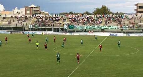 Il vantaggio del Monopoli si concretizza al minuto 60’. Per Paolucci è un gioco da ragazzi mettere alle spalle di Confente, dopo uno svarione difensivo che innesca una ripartenza letale per gli amaranto. La squadra del Presidente Gallo non si disunisce ed ha il merito di reagire allo svantaggio con grande autorità. Appena sei minuti dal suo esordio con la nuova maglia, Baclet fiuta la situazione favorevole. Sandomenico serve al compagno di squadra una palla al bacio che l’attaccante francese infila tra palo e portiere per l’1 a 1. Entrambe le formazioni vogliono i tre punti e le occasioni fioccano. Per il Monopoli da ricordare la traversa colpita da Donnarumma, mentre la Reggina và vicina al punto del sorpasso con Redolfi e Bellomo.