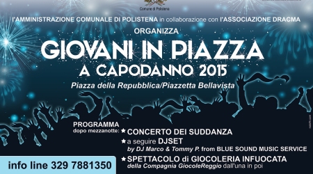 L’Amministrazione comunale di Polistena e la Compagnia Dracma organizzano “Giovani in Piazza a Capodanno 2015”. Una notte di spettacoli, musica e divertimento per iniziare insieme il nuovo anno.