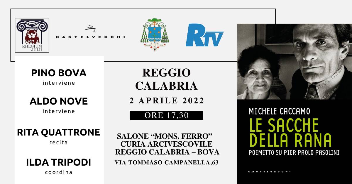 Nel corso della serata sarà presentato il suo ultimo libro “Le sacche della rana” (Castelvecchi editore) dedicato a Pierpaolo Pasolini.