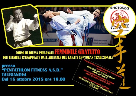 La rinomata Scuola “F.K.K.S.” di Karate Shotokan tradizionale di Francavilla Fontana (BR), diretta dal Maestro Cosimo Dario Piro, ed affiliata “G.K.S.I.F. ITALIA”, ha scelto Taurianova per avviare, in linea con i principi fondamentali dell’antica Arte Marziale giapponese, un corso pratico divulgativo rivolto al tema della sicurezza femminile, dato il problema sempre più attuale ed emergente della violenza sulle donne. Il corso di difesa personale femminile, totalmente gratuito, codificato secondo i principi del karate tradizionale e sfruttando parte dell’arsenale tecnico più idoneo alle esigenze femminili, si svolgerà nella palestra “Pentathlon Fitness Asd” di Taurianova, a cura di uno degli istruttori della Scuola pugliese, Cintura Nera 3° Dan. Il corso, che la Scuola desidera far conoscere come “P.S.I.D. – Protocollo Sicurezza Individuale Donna”, è aperto a sole donne dai 15 anni in su e si articola in 4 lezioni da circa un’ora e mezza ciascuna.