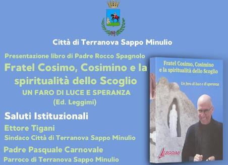 A Terranova Sappo Minulio appuntamento il 3 settembre prossimo con il libro di Padre Rocco Spagnolo “Fratel Cosimimo, Cosimino e la spiritualità dello Scoglio”. L’evento si terrà presso il Palazzo della Storia, dell’Arte e della Cultura alle ore 18.