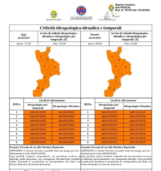 Allarme forte maltempo in Calabria, diramata dalla Protezione Civile l’allerta “Arancione” da oggi pomeriggio e per domani.