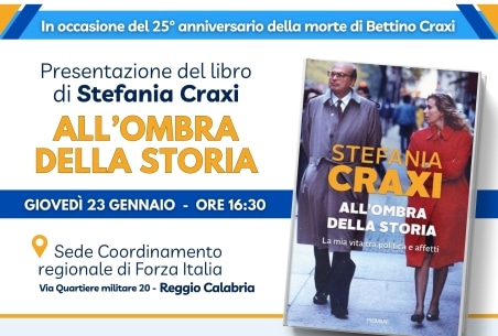 La Senatrice Craxi, Presidente della Commissione Affari Esteri e Difesa del Senato italiano, sarà a Reggio Calabria domani, GIOVEDÌ 23 GENNAIO, proprio per presentare il suo libro “All’ombra della storia. La mia vita tra politica ed affetti”, pubblicato da pochi mesi dalla casa editrice Piemme.