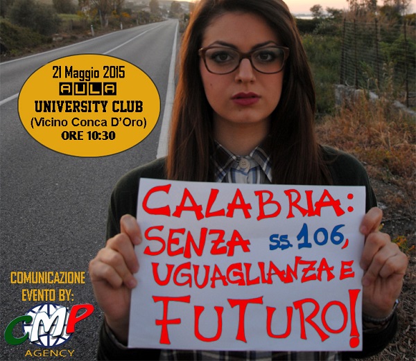 L’iniziativa, in programma per il prossimo Giovedì 21 Maggio 2015 a partire dalle Ore 10.30 nell’Aula University Club dell’Università della Calabria (Vicino la Conca D’Oro), nasce dall’idea delle associazioni universitarie “Unica”, “Athena” e “Matrix”, in collaborazione con l’Associazione “Basta Vittime Sulla Strada Statale 106” e con la media-partnership di Cmp Agency – Comunicazione e marketing di Rossano, con lo scopo di esortare, anche in ambito accademico, la discussione attorno alla famigerata strada della morte.