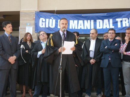 “Basta” dunque “con le false motivazioni e le finte garanzie che servono solo ad ostacolare la giustizia. Basta a revisioni inesatte delle circoscrizioni giudiziarie e delegittimazione dei magistrati”. Il settore giustizia va salvaguardato dalla criminalità così come dalle scelte politiche “incoerenti ed inopportune”. “È giunto il momento storico per questo Paese – si è detto ancora a gran voce – di ritrovare chi lotta per la illegalità. Di chiamare delinquenti e non furbetti di quartiere chi ruba allo Stato. Di non fare i processi nei salotti televisivi ma di potenziarci per poterli fare nelle aule dei tribunali. Di accantonare una classe politico-amministrativa che interloquisce con la malavita. Che consente a questa gentaglia di fare affari e di divenire rappresentanti del popolo. Qualcosa non è andato male nel nostro Paese se abbiamo consentito a quattro straccioni di diventare impresa. La più grossa delle aziende italiane, di fatturare miliardi di euro all’anno”. E poi la grande domanda: “Come è stato possibile tutto questo se non attraverso la convivenza di una fascia grigia intermedia?”.