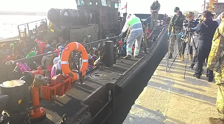 La nave della Marina militare inglese Bulwark è giunta al porto di Reggio Calabria con a bordo 913 migranti provenienti prevalentemente da Eritrea, Somalia e Nigeria. Tra loto ci sono 147 donne, 16 delle quali incinte, e 45 minori, 38 non accompagnati. Sette sono i casi di scabbia accertati. I migranti – salvati nel canale di Sicilia – sono stati condotti in porto da mezzi anfibi e saranno trasferiti in centri di varie regioni in base al piano di riparto del Viminale.