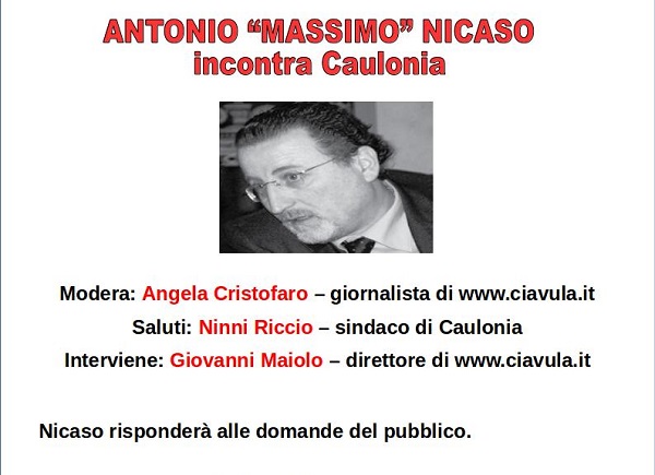 Antonio Nicaso sarà ospite di Ciavula.it, la testata on line di Caulonia e Gioiosa Ionica, martedì 12 maggio alle ore 18:30 presso il salone della biblioteca comunale in via Brigida Postorino a Caulonia Marina. A dialogare con Nicaso ci saranno i giornalisti di Ciavula e il pubblico presente, che potrà rivolgere domande ed interloquire.