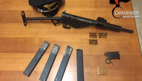 L’uomo, dopo una perquisizione veicolare e locale eseguita anche presso l’attività commerciale gestita dallo stesso, veniva trovato in possesso di una mitragliatrice da guerra marca Sten modello MK2 calibro 9, verosimilmente risalente al secondo conflitto mondiale, priva di matricola, quattro caricatori e quarantacinque cartucce calibro 9. Il tutto era abilmente occultato sotto di una catasta di legna. L’arma e le munizioni sono state sequestrate e debitamente custodite in attesa, previa autorizzazione della competente Autorità Giudiziaria, di essere avviate presso i laboratori dell’Arma per gli accertamenti tecnico–balistici. Al termine delle formalità di rito, l’arrestato è stato associato presso la Casa Circondariale di Palmi a disposizione della competente Autorità Giudiziaria.