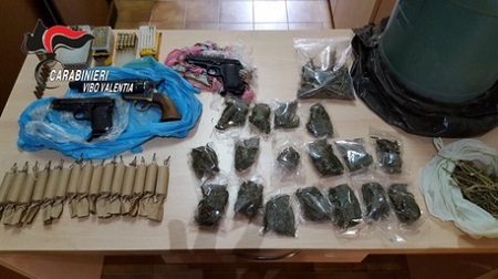Due pistole semiautomatiche clandestine, con 36 colpi, e un revolver con altri 50 colpi, sono state trovate, assieme ad alcune centinaia di grammi sostanza stupefacente, a Joppolo dai carabinieri della Compagnia di Tropea che hanno arrestato padre madre e due figli. In manette, per detenzione di armi illegali, munizionamento e sostanze stupefacenti, sono finiti Antonio Taccone, di 59 anni, la moglie Domenica Calabrese (54) e i figli Salvatore (31) e Francesco (21). Le armi e la droga, contenute in diversi involucri, scoperte nell’ambito delle attività di controllo del territorio disposte dal comando provinciale dell’Arma di Vibo Valentia, erano state nascoste in un capanno nella loro disponibilità e in un bidone interrato proprio sotto l’abitazione della famiglia nella frazione Caroniti.