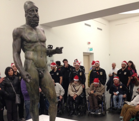 Dopo aver esposto la maglia ufficiale alla platea presente, che oltre al simbolo dell’Unitalsi ha impresso anche i volti dei Bronzi di Riace, i rugbisti reggini hanno fatto indossare ai ragazzi diversamente abili e ai loro accompagnatori dei simpatici capellini di Natale in segno di festa. Successivamente tutto l’entourage della società e il gruppo dell’ Unitalsi hanno iniziato la visita guidata alle opere d’arte del Museo Nazionale Archeologico.