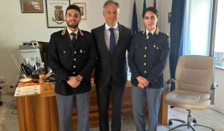 Questa mattina il Questore di Catanzaro ha accolto due nuovi Funzionari della Polizia di Stato provenienti dalla Questura di Enna, la dott.ssa Giulia Ceravolo e il dott. Giuseppe Travagliante.