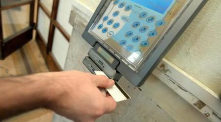 Un impiegato statale timbra il cartellino all'uscita del lavoro in una foto di archivio. ANSA/FRANCO SILVI