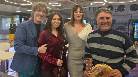 Il lounge dell’Airport di Lamezia Terme si è trasformato, venerdì 13 marzo, in un vero salotto musicale grazie alla diretta di LaC TV (canale 11 DTT e Radio in streaming su LaC Play) del programma “Ma cosa hai messo nel caffè”, condotto da Luigi Grandinetti e Simona Palaia. Ospiti della puntata Aurora e Pasquale Foti, cuore del progetto Calabrisound, da anni impegnato nella valorizzazione della cultura musicale calabrese, e non solo. L’incontro si è aperto con “Emigrazioni”, il brano con cui il cantautore-chitarrista Pasquale Foti racconta le storie dei calabresi partiti per America, Australia, Canada e tanti altri paesi del Mondo. Una canzone che parla di radici, memoria e identità, evocando immagini di valigie di cartone e partenze all’alba. Protagonista della diretta anche la cantautrice e musicista Aurora Foti, reduce dai suoi recenti passaggi su Rai 1 nella rubrica “Canta che ti passa” di Uno Mattina in Famiglia. In studio ha condiviso emozioni e ricordi dell’esperienza televisiva (ancora in gara), prima di eseguire “Yesterday” dei Beatles, interpretata con eleganza e sensibilità. Il momento più intimo è arrivato con “Amuri Amuri”, che Pasquale ha dedicato alla moglie, mentre il finale ha visto padre e figlia unire ancora una volta le loro voci in “Beautiful That Way – Smile”, regalando al pubblico un’atmosfera intensa e familiare. Ma torniamo a Pasquale Foti artista poliedrico che trasforma la vita quotidiana in musica autentica. Tra i suoi brani più significativi eseguiti venerdì a LaC Tv c’è un pezzo iconico che trascina il pubblico: “Mannaja lu bisognu”. Durante la trasmissione anche i presentatori Luigi e Simona, oltre che i passanti viaggiatori, hanno interagito con Pasquale, artista definito da scrittori e storici affermati, uno degl’ultimi cantastorie. Una denuncia del menefreghismo sociale: tutti dicono “se hai bisogno chiamami”, ma quando serve davvero ci si ritrova soli, affidati alle persone care. Con questo pezzo Foti dà voce a una verità condivisa ma taciuta. La sua musica, radicata nella tradizione calabrese e aperta alle contaminazioni, racconta fragilità e resistenze quotidiane, intrecciandosi con il talento della figlia Aurora e con la visione culturale del progetto Calabrisound.