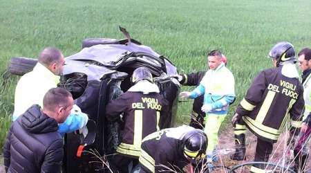 In mattinata, una squadra dei vigili del fuoco di Crotone, è intervenuta sulla S.S. 106 nel Comune di Cutro, Località Steccato, per un incidente stradale che ha coinvolto un’autovettura con alle guida un ragazzo. L’autovettura ha sbattuto contro la rotonda, capovolgendosi, finendo la corsa fuori strada in un terreno limitrofo. I vigili hanno estratto il ferito dall’abitacolo con la collaborazione del 118, e trasportato con l’elisoccorso atterrato sul posto, all’ospedale di Catanzaro. Sul posto la polizia stradale, i carabinieri di Cutro e i volontari della misericordia.