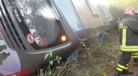 BARI – Cinque persone – tutte passeggeri di un bus gran turismo – sono rimaste ferite in modo lieve dopo che il mezzo sul quale viaggiavano, per cause in corso di accertamento, si è ribaltato questa mattina intorno alle 6 sulla A14, in prossimità del casello Sud. Il bus – 54 posti – era partito ieri sera da Reggio Emilia ed era diretto in Calabria. Sul posto ci sono diverse pattuglie della Polizia stradale. L’autostrada è al momento semibloccata a causa della presenza dei passeggeri del bus in strada.