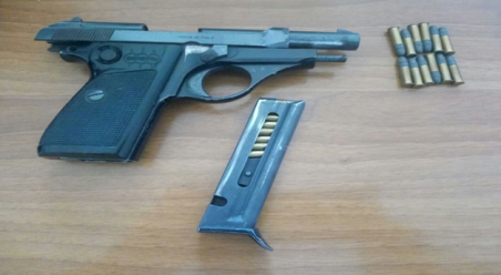 NONOSTANTE IL DIVERSO FINE DELLA PERQUISIZIONE, I MILITARI SI SONO IMBATTUTI NEL RITROVAMENTO DELL’ARMA, CON MATRICOLA ABRASA, PERFETTAMENTE FUNZIONANTE E PRONTA ALL’USO, ACCURATAMENTE OCCULTATA SOPRA UNA CREDENZA DELLA SALA, TRA POSATE E BICCHIERI, ALL’INTERNO DI UN’INSOSPETTABILE POCHETTE DA DONNA.