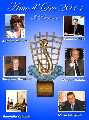 I premiati con l’Amo d’oro 2011, saranno: per il Sociale, Adriana Musella per il suo grande impegno, nei confronti della società, affinché fiorisca una nuova cultura della legalità, un nuovo movimento antimafia; per imprenditoria a Filippo Callipo, per il suo grande impegno in Calabria, territorio difficile per svolgere questa attività, ma, con coraggio e audacia, a testa alta, è diventato un simbolo da seguire per la nostra regione; per il giornalismo a memoria di Mimmo Calabrò, per essersi distinto sempre per la sua obiettività e per essere sempre stato al servizio del cittadino e della verità attraverso l’informazione corretta ed esemplare; per la cultura Mario Caligiuri, per il suo grande impegno, da assessore regionale, a favore della promozione culturale e valorizzazione della ricerca, in modo particolare perché si è battuto per valorizzare il patrimonio culturale della regione e per essere stato il promotore del piano di completamento dei beni culturali della Calabria; per la promozione e valorizzazione vinicola alla famiglia Criserà per aver promosso e valorizzato la produzione vinicola locale esportandola in tutto il mondo facendola conoscere a tutti; per lo sport Giuseppe Cormaci per il suo impegno incessante nei confronti dello sport, da Presidente della Federazione sportiva FIPAV RC e da dirigente del CONI, per i suoi successi di oltre 40 anni nell’organizzare manifestazioni sportive di carattere nazionale ed internazionale, ultime fra tutte, nel settembre del 2010, aver ricoperto l’incarico di presidente organizzativo per la tappa reggina dei mondiali di pallavolo.