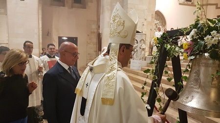 In occasione della Messa Solenne in onore della Madonna del Pilerio, la Banca di Credito Cooperativo Mediocrati ha donato una nuova campana alla Cattedrale di Cosenza. La campana è stata benedetta da Mons. Nolé, alla presenza del rettore don Luca Perri e del presidente della Banca, Nicola Paldino.