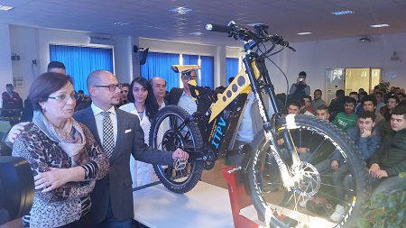 “La “Mountain Bike”, funziona sia a pedalata assistita che come motorino, per cui percorrere insidiosi tratti in salita non sarà un problema effettivo. Il retrotreno è a sistema a quadrilatero deformabile, mentre la Staffa è realizzata in base alle esigenze di chi ne usufruisce. Il Display comprende 5 livelli di assistenza ed è completo di configuratore di velocità” hanno spiegato i docenti.
