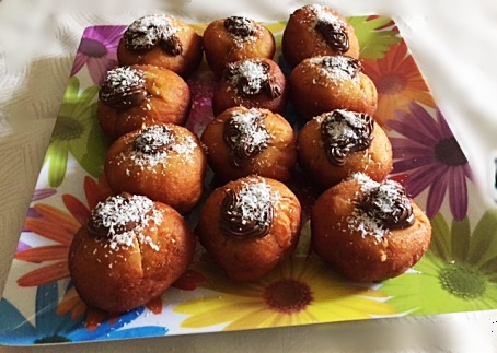Le bombe di Carnevale sono dei dolci fritti ripieni di golosa crema, marmellata o nutella. Ho preferito utilizzare la crema di nocciole più famosa al mondo e una spolverata di farina di cocco al posto dello zucchero a velo.