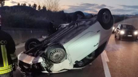 All’arrivo sul posto vi era una fiat 500 capovolta su se stessa dopo l’urto con una Ford Fiesta, due le persone ferite, i conducenti, che sono stati soccorsi e portati in ospedale dai sanitari del 118 non in gravi condizioni.