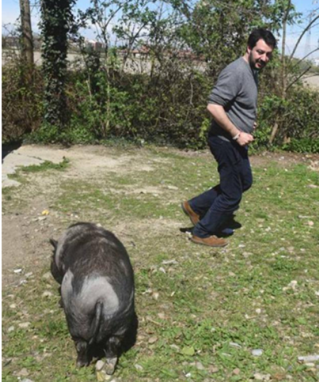 Salvini inseguito dal maiale. I soccorritori faticano a distinguerlo.