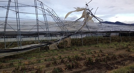 vento che ha piegato anche le strutture di metallo e capannoni. Coldiretti