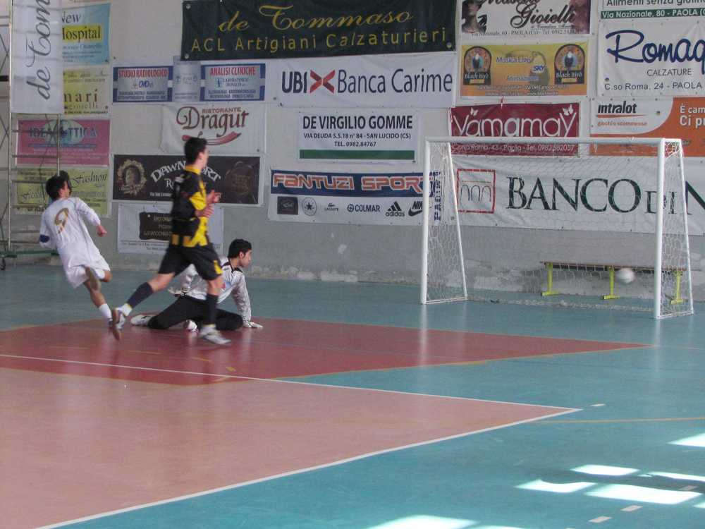 PAOLA – Nella prima gara della fase finale regionale juniores, il “Città di Paola” batte “Il Gatto e la Volpe” tra le mura amiche. Ottima la prestazione di tutta la compagine allenata da mister Lattuga, in particolare dell’estremo difensore Castellano, decisivo in più di una occasione, e del capitano Chiappetta Raffaele, autore di una tripletta, che hanno trascinato la squadra alla vittoria. Tra gli ospiti buona la prova di Amodeo e del capitano Calabretta. Partita molto viva sin dalle prime fasi di gioco con gli avversari che si rendono pericolosi in più occasioni ma prima un super Castellano e poi due legni non permettono loro di passare in vantaggio. La squadra di casa dopo un avvio un po’ sottotono inizia a macinare gioco e trova la via del gol con Vilardi intorno al sedicesimo. Poco dopo Chiappetta Raffaele raddoppia. Sul finale di prima frazione gli ospiti riaprono la gara con Calarota. Nella ripresa il Gatto e la Volpe prova a pareggiare i conti ma si scopre lasciando spazio al contropiede letale dei due Chiappetta che permettono a Borgia di portare la gara sul 3-1. Gli ospiti subiscono il colpo e poco dopo ancora Chiappetta Raffaele va in gol per il 4-1. Nel finale Amodeo realizza su punizione la seconda rete per gli ospiti ma è ancora Chiappetta Raffaele a firmare la tripletta personale per il definitivo 5-2.