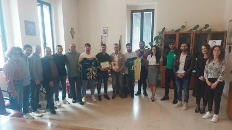 Il sindaco Roy Biasi, su proposta dell’assessore alle Politiche Giovanili, Maria Fedele, ha consegnato un targa ricordo ad una delegazione del Real Taurianova guidata da mister Domenico Nava, per festeggiare la squadra di calcio che ha ottenuto la promozione nel campionato di Seconda Categoria dopo aver battuto ai play off, gara secca tra le mura amiche, il Mamerto.