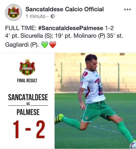 Tre punti d’oro colato per la ultracentenaria Palmese all’esordio nel Campionato Nazionale di Serie D, Girone I, che, sull’Isola siciliana batte a domicilio la Sancataldese. Cinica e spietata, la Palmese di mister Alessandro Pellicori rimonta l’iniziale vantaggio dei siciliani in casacca verdeamaranto arrivato dopo appena 4 minuti di gioco con un bellissimo gol del diciottenne Sicurella, bravo a battere l’incolpevole portiere neroverde Franza con un colpo sotto a superarlo. Palmese in confusione mentre i siciliani sfiorano il raddoppio con Ficarrotta che calcia forte dalla distanza sfiorando la rete di pochissimo. Al minuto numero 19 però la Palmese riesce a pareggiare con il classe 1998 Molinaro che trova lo spazio giusto in area di rigore per ristabilire la parità.