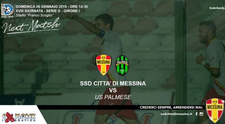 PALMI – Città di Messina-Palmese, gara valevole per la 18^ giornata del Campionato Nazionale di Serie D, Girone I, 2018/2019 (prima del Girone di ritorno), in programma domenica 6 Gennaio 2018, alle ore 14:30 allo stadio “Franco Scoglio” di Messina, sarà arbitrata dal Signor Luca Calvi della Sezione A.I.A. di Bergamo. Assistenti saranno i Signori Daniele Conti della Sezione A.I.A. di Lecco e Michele Collavo della Sezione A.I.A. di Treviso.