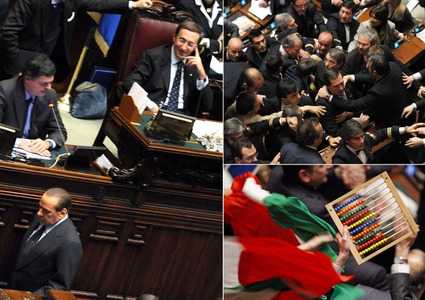 ROMA – Sono stati solo tre i voti con i quali è stato possibile alla maggioranza bocciare le mozioni di sfiducia nei confronti del governo. E determinanti possono essere considerati i voti di Massimo Calearo, Bruno Cesario e Domenico Scilipoti, i tre deputati del “Movimento di responsabilità nazionale”. Un suo peso, tuttavia, lo hanno avuto anche il non voto di Silvano Moffa (Fli), che pure era presente in Aula ma non ha risposto a nessuna delle due chiame, e quello di Antonio Gaglione, ex Pd ed oggi ‘Noi Sud’ che a Montecitorio non si è visto. Ovviamente determinanti anche i voti di Catia Polidori e di Maria Grazia Siliquini, entrambe di Fli, che alla fine hanno deciso di votare contro le mozioni di sfiducia. BOSSI, NON C’E’ VETO DELLA LEGA ALL’UDC – “Non c’é veto all’Udc. C’é il problema del federalismo ma non basta”. Così il leader della Lega Nord, Umberto Bossi, risponde ai cronisti a Montecitorio che gli chiedono se ci sia un veto della Lega Nord ad un allargamento della maggioranza ai centristi di Casini. PORTAVOCE, FINI NON SI DIMETTERA’ – “Il presidente Fini, come ha detto domenica nella trasmissione di Lucia Annunziata, non si dimetterà dalla propria carica di presidente della Camera, salvo si dimostri la sua mancanza di imparzialità nella conduzione dei lavori parlamentari”. E’ quanto afferma il portavoce del presidente Gianfranco Fini, Fabrizio Alfano. DEPUTATI PDL A FINI, DIMETTITI ‘COGLIONAZZO’ – Il presidente della Camera Gianfranco Fini esce dall’Aula accompagnato da un cordone di commessi dopo l’esito del voto sulle mozioni di sfiducia al governo. Ai cronisti che tentano di avvicinarlo replica solamente, mentre in Aula sono in corso i festeggiamenti con tanto di bandiere tricolore sui banchi del Pdl, “state buoni almeno voi”. Alcuni deputati del Pdl, mentre passa attraverso il Transatlantico gli urlano: “Dimettiti coglionazzo”. Il Senato ha approvato la fiducia con 162 voti a favore, 135 contrari.