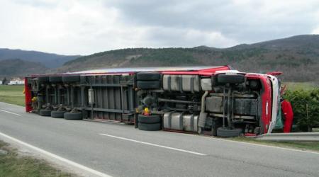Camion si ribalta per il vento forte, due feriti