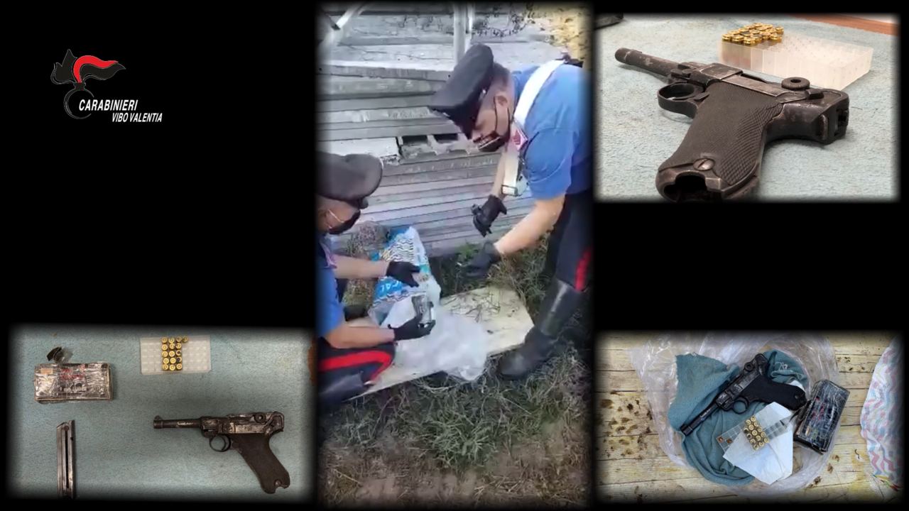 Dalle prime luci dell’alba, i militari della Compagnia Carabinieri di Vibo Valentia, con l’ausilio dello Squadrone Eliportato Cacciatori e di unità cinofile, hanno avviato una operazione che si è estesa sino al territorio di Zungri, dove in una serie di casolari, abilmente occultata sotto una catasta di travi e ponteggi, è stata rinvenuta una potente pistola Walter P38 calibro 9×17, con matricola abrasa e completa di munizionamento.