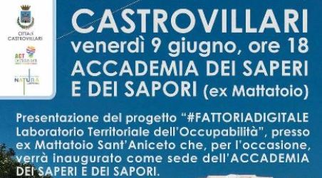 Venerdì 9 giugno , alle ore 18, l’ex Mattatoio di Sant’Aniceto di Castrovillari verrà inaugurato dall’Amministrazione comunale ed aperto alla città come sede dell’Accademia dei Saperi e dei Sapori, strettamente collegati alle vocazioni del territorio. Per la particolare occasione sarà presentato il progetto “Fattoria Digitale – Laboratorio territoriale dell’occupabilità” rivolto alle giovanissime generazioni e per il quale l’amministrazione ha offerto il proprio apporto.