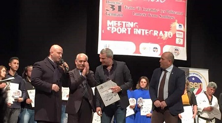 Meeting dello sport integrato e riconoscimento alle eccellenze calabresi 2015 di tutti i settori sportivi CSEN, con alle spalle più di venticinque anni di esperienza. Il Gran Galà dello Sport 2016, organizzato dal C.S.E.N. Comitato provinciale di Catanzaro e dalla delegazione città di Lamezia Terme, con la collaborazione di Lamezia Eventi e dell’A.S.D. Fisiodinamic e il patrocinio del Comune di Lamezia Terme, che si è svolto nel teatro Franco Costabile (ex Politeama), a Lamezia Terme – Sambiase, domenica, 31 gennaio 2016, quest’anno ha unito la passione per lo sport alla solidarietà. “Oltre a premiare le eccellenze sportive del 2015 CSEN, abbiamo pensato di organizzare un Galà promozionale di varie attività sportive, fra cui arti marziali, ginnastica ritmica e sportiva, danza, discipline da combattimento, balli sociali, da sala e caraibici, per la raccolta di fondi a favore dell’associazione sportiva dilettantistica Lucky Friends di Lamezia Terme, che si occupa di fare svolgere attività sportiva a bambini e ragazzi diversamente abili”, ha spiegato il presidente del Comitato provinciale di Catanzaro C.S.E.N. Francesco De Nardo, affiancato nell’organizzazione della manifestazione dal vicepresidente Antonio Caira e dal coordinatore Sergio Servidone. Tante sono state le società e associazioni sportive dilettantistiche (Fitness Therapy Center di Acconia di Curinga, Riccardo La Croce Danza di Catanzaro, Balli&Balli di Catanzaro, Lucky Friends di Lamezia Terme, N.a. D.d. Academy di Lamezia Terme, Minami di Catanzaro, Palestra Marconi di Lamezia Terme, New Body Fashion di Catanzaro, Scolacium Gym di Catanzaro, Real Sport di Cittanova, Taekwondo Petronà di Petronà, settore Scacchi CSEN nella persona di Maurizio Leone di Catanzaro, Team Surace di Reggio Calabria, settore Indoor Cycling con Caterina Britti e Virgilio Pellegrino, Krak Team di Decollatura con Giulia Chiodo, Passione Danza di Catanzaro, Energy Macrillò di Le Castella, Team Taekwondo di Catanzaro del maestro Tonino Guerra, Gym and Joy di Taverna) che, condividendo lo scopo solidaristico dell’evento, hanno voluto partecipare. Ad accogliere e incoraggiare i numerosi atleti, all’apertura della manifestazione, oltre gli organizzatori, sono stati il sindaco di Lamezia Terme, Paolo Mascaro, e l’assessore comunale allo sport, Angelo Bilotta, che hanno dimostrato grande sensibilità e disponibilità, mettendo anche a disposizione il teatro. Presentati da Francesco Paonessa, tutti gli sportivi si sono poi susseguiti sul palcoscenico nelle varie e affascinanti esibizioni previste, per poi lasciare spazio alle eccellenze che nel 2015 si sono distinte nel campo sportivo, dando risalto alla Calabria in Italia e nel mondo in oltre venticinque anni di attività. A ricevere le “gocce di bronzo” CSEN sono stati quest’anno: Umberto Montalto, campione di body building, Franco Rafele, pluricampione di bench press, Cinzia Mazza, maestra di taiji e kung fu, Sergio De Nisi, promotore sportivo, e Pino Alessi, atleta e maestro storico di body building di Crotone.