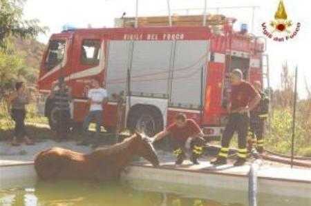 Cavallo cade in piscina. Salvato dai Vigili del fuoco