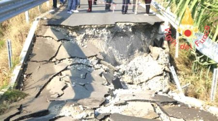 Una strada secondaria, che collega Cropani alla strada statale 106, è crollata la scorsa notte ed ora tre famiglie, che risiedono nei pressi dell’arteria franata, sono di fatto completamente isolate. Sono in corso gli interventi dei Vigili del Fuoco per tentare di creare una sorta di collegamento secondario. La strada era stata realizzata poco tempo fa da Rfi nell’ambito del programma di chiusura dei passaggi privati lungo la ferrovia. Sul posto infatti, oltre ai Carabinieri e al personale dell’ufficio tecnico comunale, sono intervenuti i tecnici ed il personale del Consorzio di bonifica per la verifica dello stato della conduttura di una rete idrica. Non è escluso infatti che il crollo possa essere stato causato da un’importante perdita d’acqua. Il crollo della strada, che è adiacente alla rete ferroviaria, è avvenuto in due punti: nei pressi di un piccolo ponte che attraversa un fosso di scolo e poco più avanti. Al momento non sono state segnalate conseguenze per la ferrovia. L’allarme è stato lanciato all’alba da uno dei residenti che, nell’uscire con la propria autovettura, si è trovato davanti la strada franata.