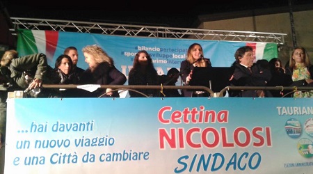 Una battagliera Cettina Nicolosi ha ringraziato la folla accorsa in piazza per seguire il suo comizio: «Siete voi la miglior risposta alle accuse di qualche extraterrestre». Sull’onda emotiva del discorso di Giada Fazzalari, la candidata sindaco di “Taurianova Libera” ha incentrato il suo intervento sulla necessità di restituire democrazia e libertà alla città, sulla voglia di perseguire interessi collettivi e non personali, sul concetto di moralità alla base del confronto con la popolazione: «Siamo liberi dai presidenti di turno, dalle prebende, non ci dobbiamo confrontare con la casta». Parafrasando Pirandello ha concluso la prima parte del suo discorso: «Non abbiamo bisogno di indossare maschere: noi abbiamo il nostro volto».