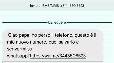Da diversi giorni sia su WhatsApp che tramite sms dei cellulari a centinaia di utenti (tra questi a chi sta scrivendo), arriva un messaggio molto strano del tipo, “Ciao papà ho rotto, ho perso il telefono, questo è il mio nuovo numero, puoi salvarlo e scrivermi su…”, un indirizzo web che porterebbe a una vera e propria truffa perché si rischia di svuotare i conti correnti bancari.