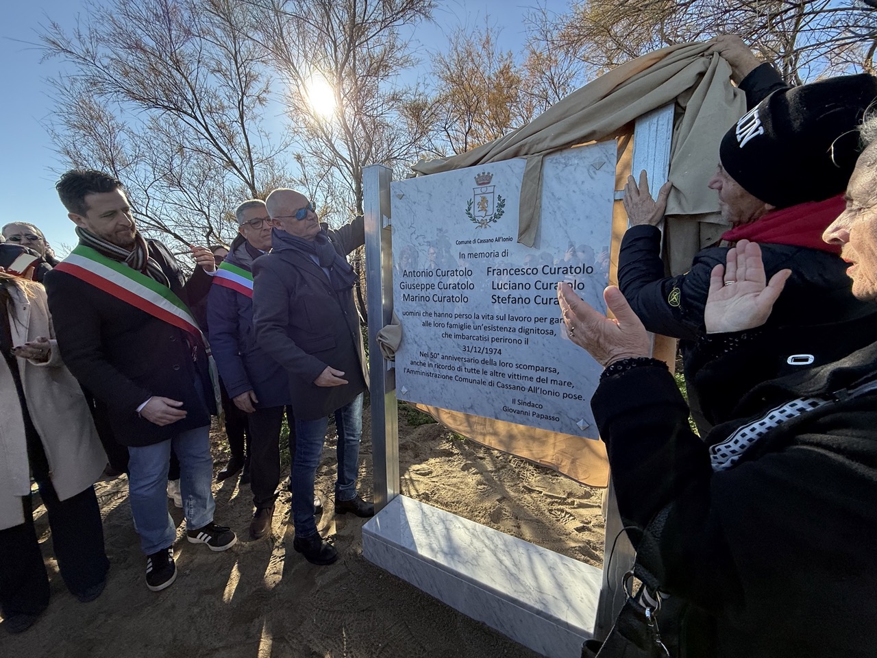 «Sono stato contattato da alcuni componenti della famiglia Curatolo – ha spiegato il sindaco di Cassano Giovanni Papasso – scoprendo che la barca della famiglia Curatolo venne trovata proprio qui. Ci siamo messi subito a disposizione per restituire piena memoria a questo episodio perché fa parte anche della storia di Sibari. Il messaggio che oggi parte dalle spiagge di Sibari è per ricordare tutte le vittime del mare, le vittime delle famiglie Curatolo e Celi, ma più in generale tutte le vittime del lavoro in mare e quelle che partono e attraverso il mare vanno in cerca di una Terra promessa che non troveranno mai».