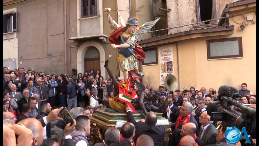 CINQUEFRONDI – Da simbolo equivocato a simbolo della certezza e della legge. C’è la volontà dello Stato, anche con questi gesti, di strappare i miti stereotipati della ‘ndrangheta e portarli verso le istituzioni e la legalità. E’ quanto avvenuto lunedì sera alla festa di San Michele Arcangelo a Cinquefrondi, patrono della cittadina, quando subito dopo la funzione religiosa il Prefetto di Reggio Calabria Michele Di Bari e il Questore Raffaele Grassi hanno deposto, rispettivamente, ai piedi della statua del santo, due mazzi di fiori per testimoniare l’appartenenza, inequivocabile, dell’Arcangelo al bene e alla legge.