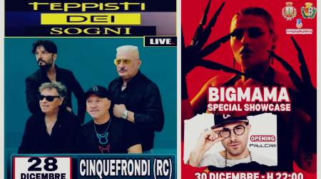 Il 30 dicembre arriva in Calabria l’artista del momento, BigMama, che si fa apprezzare non solo per le sue performance artistiche, ma soprattutto per le tematiche sociali che porta in scena con coraggio e determinazione. L’intero spettacolo che prevede anche la presenza del famoso Dj PaulCam che farà ballare tutte la piazza prima e dopo l’attesa artista, sarà GRATUITO. La cittadina della Piana è già in fibrillazione ed è pronta a diventare il riferimento per tutto il territorio durante queste feste e a far trascorrere due serate imperdibili alle tantissime persone che accorreranno a Cinquefrondi.