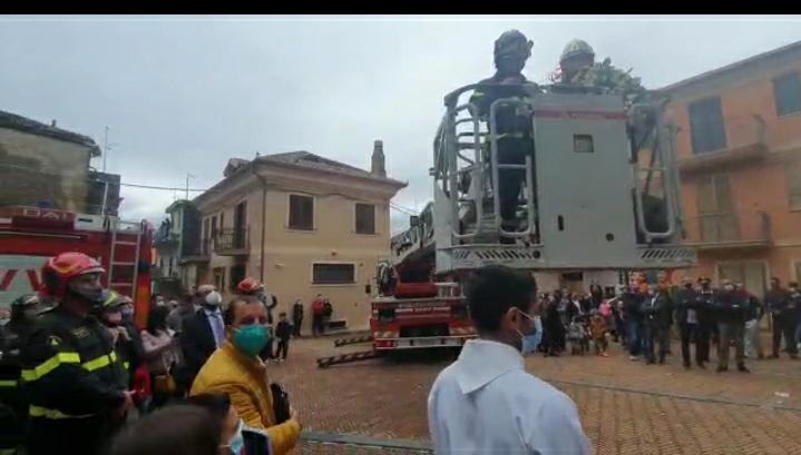 In piazza tanti i fedeli e i vigili del fuoco presenti.