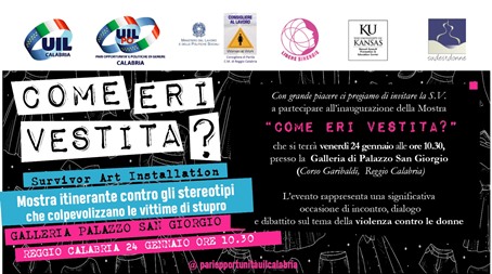 La Uil Calabria, in collaborazione con il Coordinamento Pari opportunità della Uil Calabria e con il patrocinio della Consigliera di parità della Città Metropolitana di Reggio Calabria, è lieta di annunciare l’inaugurazione della mostra itinerante “Come eri vestita?”, un progetto che denuncia gli stereotipi legati alla violenza.
