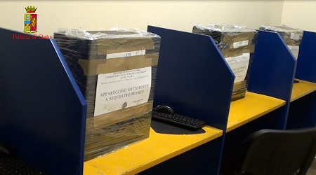 Nell’ambito dell’attività, il personale del Commissariato di P.S. di Gioia Tauro, unitamente al personale dell’AAMS di Reggio Calabria, è intervenuto presso la sala giochi “VENTRE” di Rosarno, rilevando la presenza di 9 personal computer completi, 4 quattro stampanti utilizzate per il rilascio della ricevuta delle scommesse e 8 apparecchi slot, collocati all’interno di una saletta.